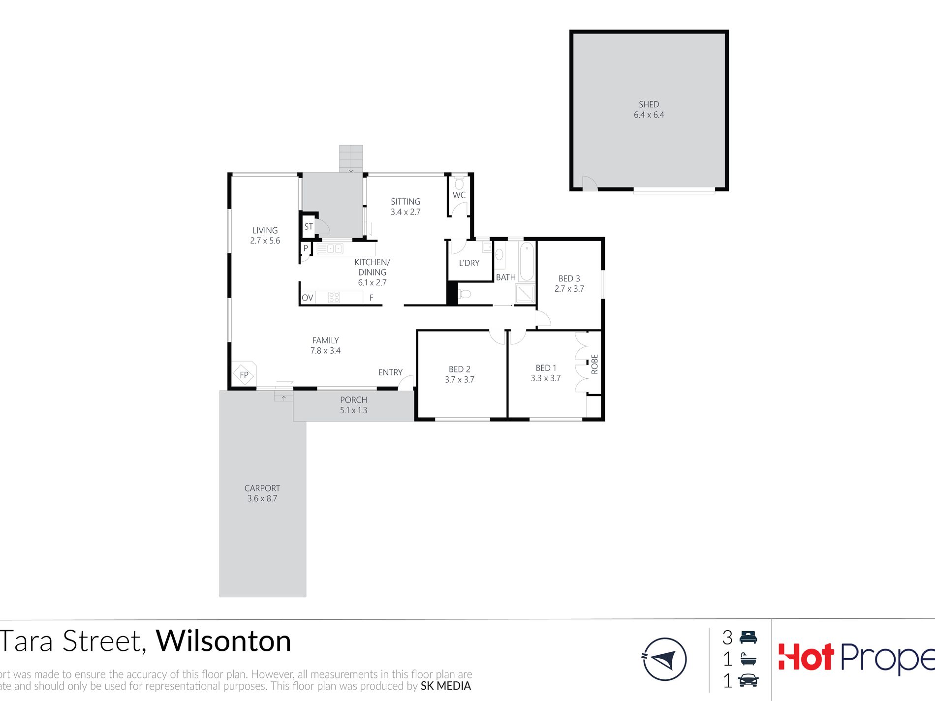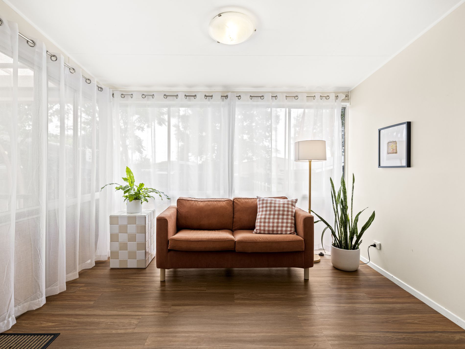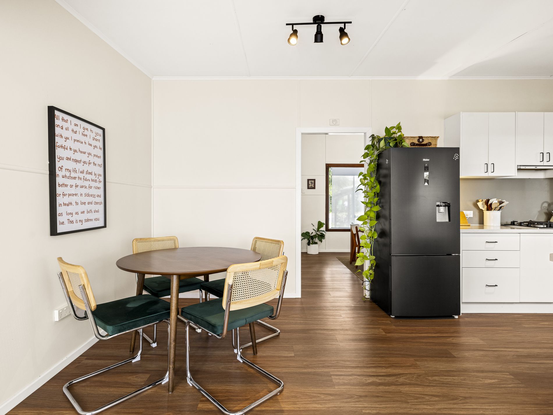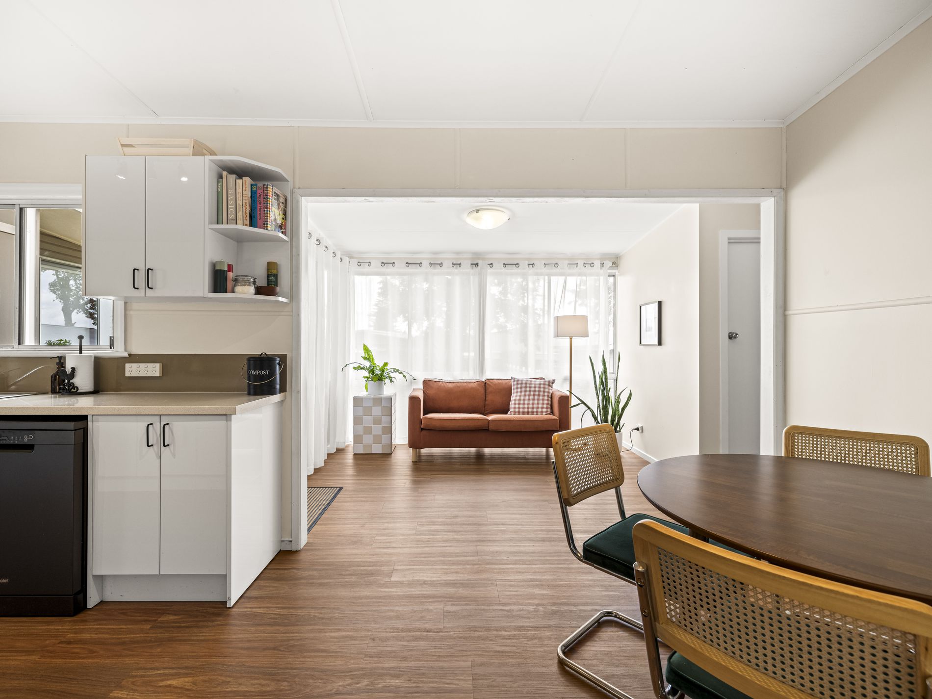 The central kitchen and dining area are well-proportioned, with ample bench space and storage, making daily living and entertaining easy. A separate sitting room adds flexibility, ideal as a second living area, home office, or kids’ playroom. Three (3) bedrooms are positioned for privacy, with the main featuring built-in storage. A central bathroom, separate toilet, and dedicated laundry ensure practicality.