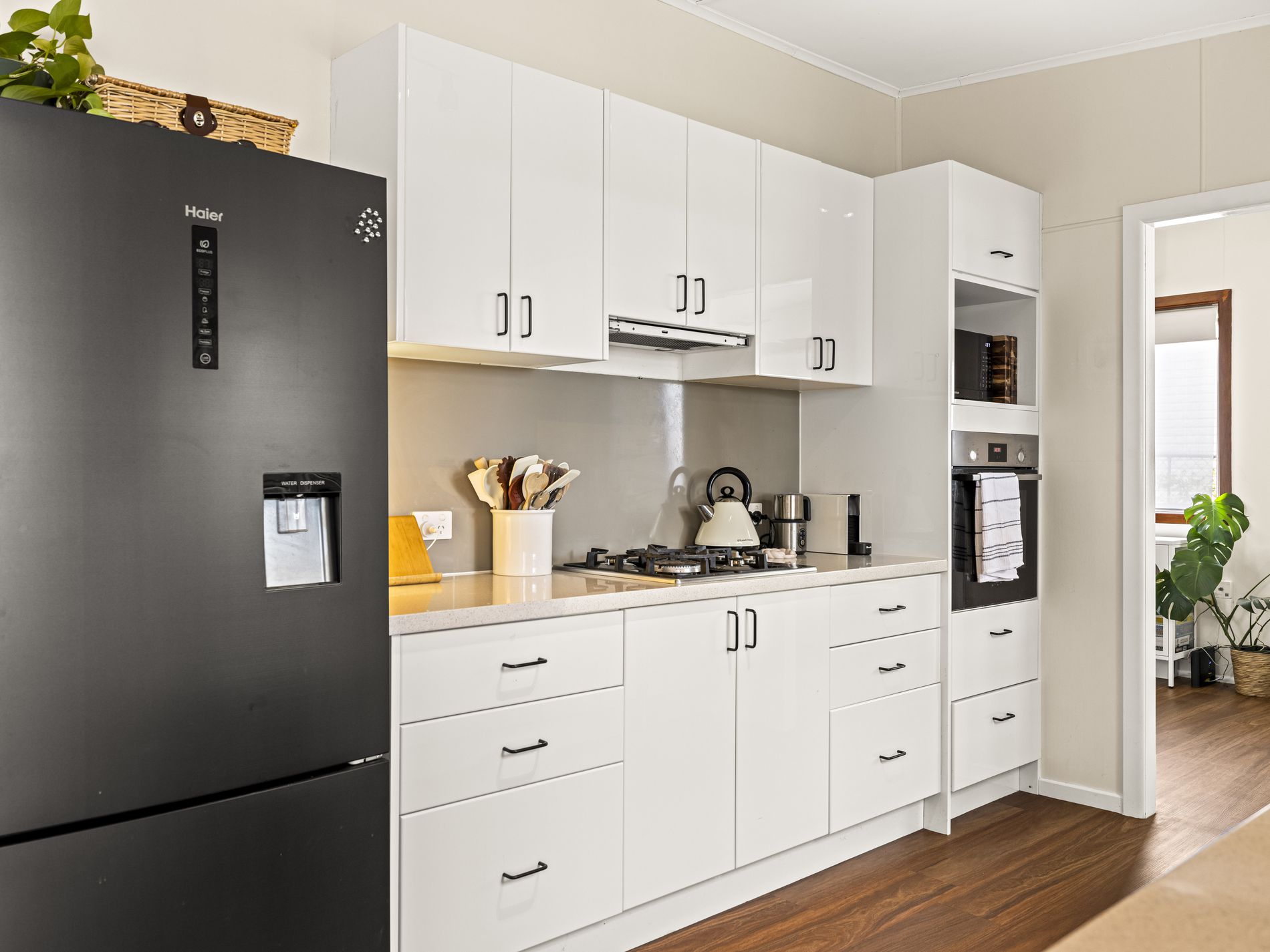 - Gas cooktop, electric oven and new dishwasher